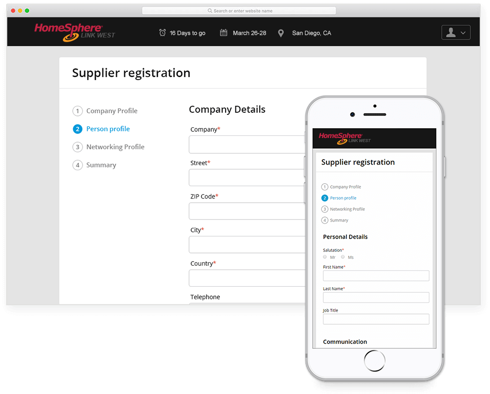 Enter data for the FIRST person participating. Additional team members are added to your company profile AFTER your company profile is complete with your first attendee.